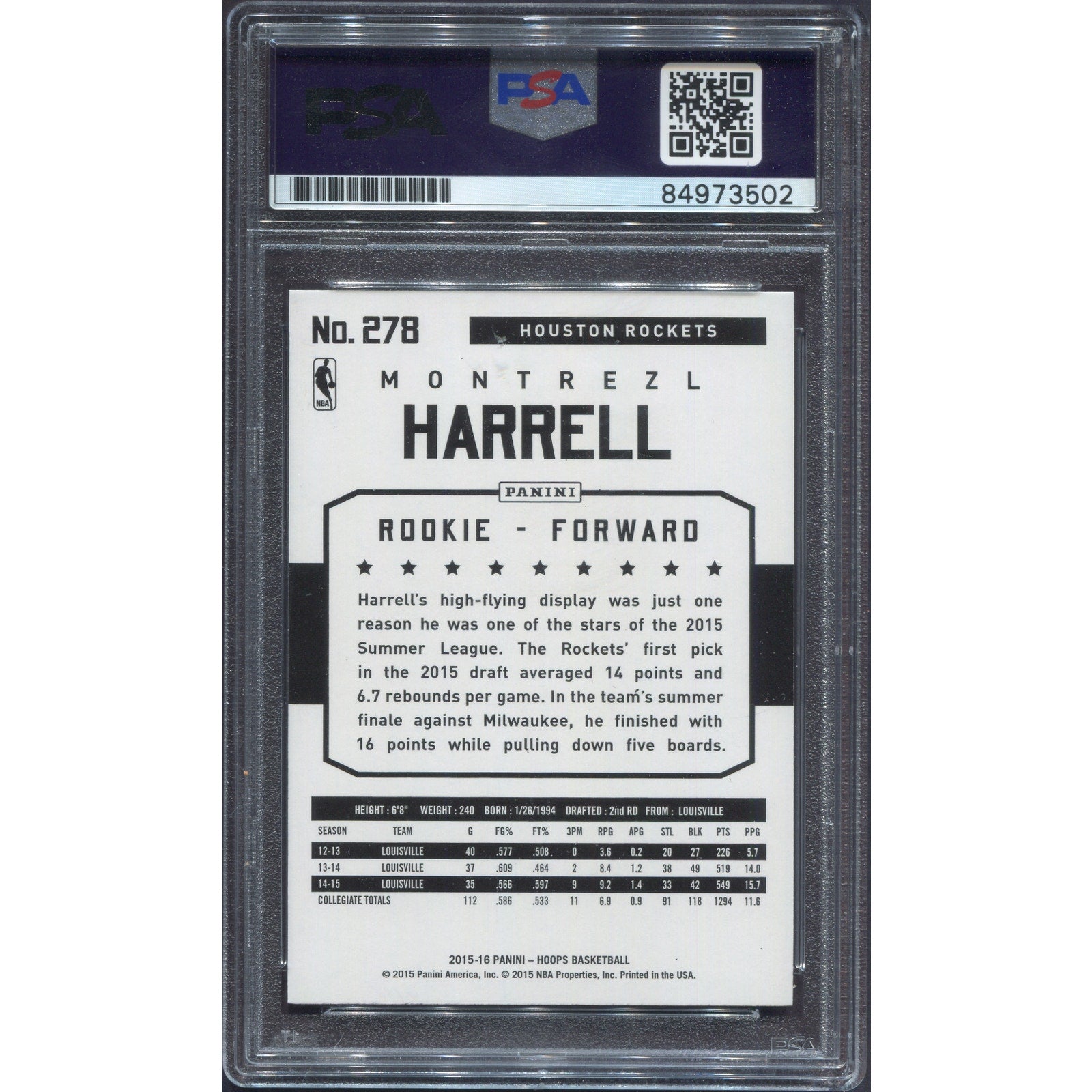 2015 Panini NBA Hoops Montrezl Harrell Signed Rookie Rockets RC Auto PSA/DNA