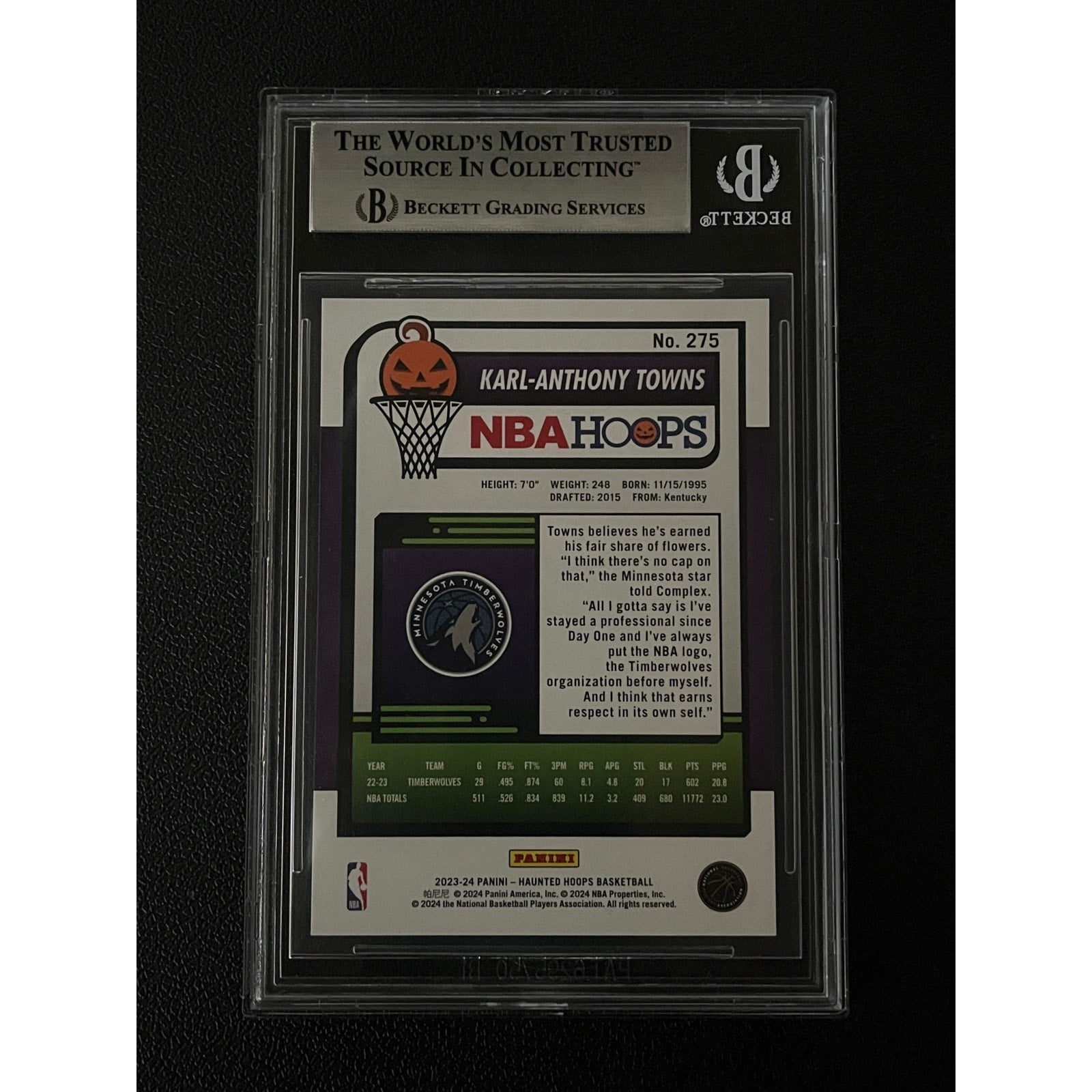 Karl Anthony Towns Signed 2023 Haunted Hoops #275 Auto Beckett BAS